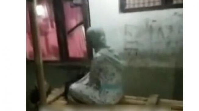 Rakaman video yang menunjukkan ‘wanita’ tersebut sedang duduk di hadapan rumahnya. – Suara Bekaci