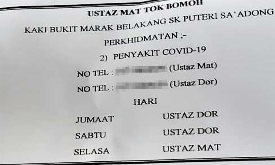 Terdahulu, tular satu iklan dalam bentuk risalah memapar tawarkan rawatan Covid-19 di Bukit Marak, Kelantan.