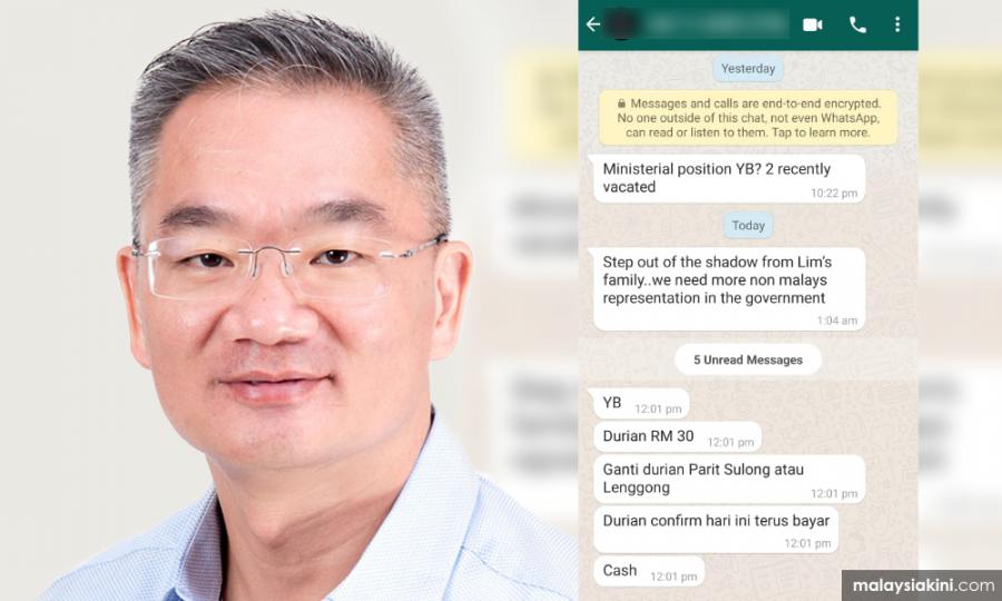Berkongsi mesej WhatsApp yang diterimanya, Khoo berkata terdapat nombor yang tidak dikenali menghubunginya dan memberitahu mengenai dua kekosongan jawatan menteri sekarang.