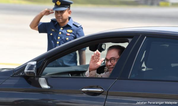 Terdahulu, Anwar menyambut keberangkatan tiba Sultan Hassanal Bolkiah serta delegasi Brunei yang selamat mendarat di Pangkalan TUDM pada 11.40 pagi.