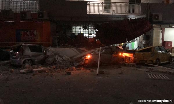 Gegaran akibat struktur rasuk pada bumbung sebuah banguna komersial lima tingkat di Jalan Kuchai Lama, di Kuala Lumpur, runtuh malam tadi, dirasai sehingga ke bangunan sebelah.