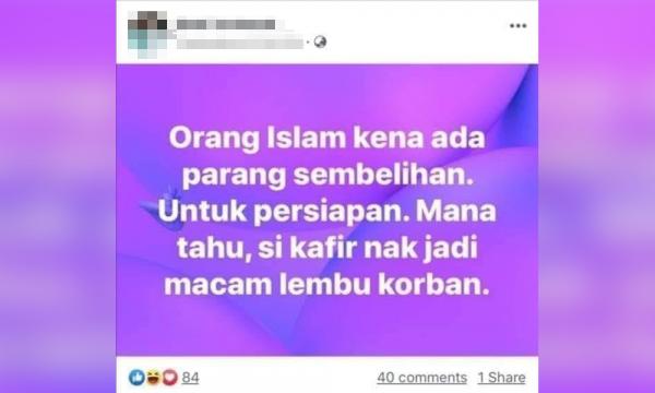 "Orang Islam kena ada parang sembelihan. Untuk persiapan. Mana tahu, si kafir nak jadi macam lembu korban."