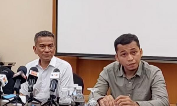 Bekas Pengarah Jabatan Komunikasi Komuniti (J-KOM) Mohammad Agus Yusoff dan seorang pegawai agensi itu tampil bersama pada sidang media bagi menjelaskan video tular yang didakwa rakaman perbualan mereka.