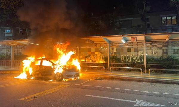 Polis mengesahkan menahan seorang lelaki yang juga pekerja p-hailing selepas didapati membakar kereta polis bantuan di hentian bas di Stesen MRT Mutiara Damansara, Petaling Jaya, awal pagi ini.