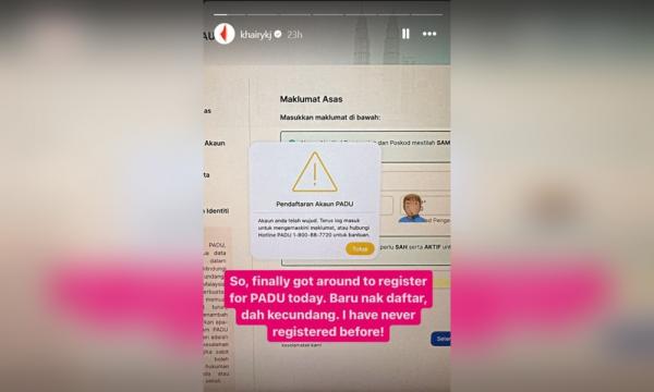 “Baru nak daftar dah kecundang,” tulisnya di media sosial sambil berkongsi tangkapan layar mesej daripada sistem Padu.