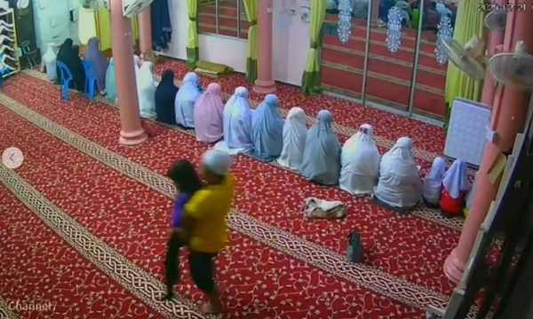 Dalam rakaman itu, seorang lelaki berkopiah putih menyelinap masuk ke bahagian ruangan solat wanita sebelum memeluk dari belakang budak itu dan membawanya keluar dari ruangan solat wanita.