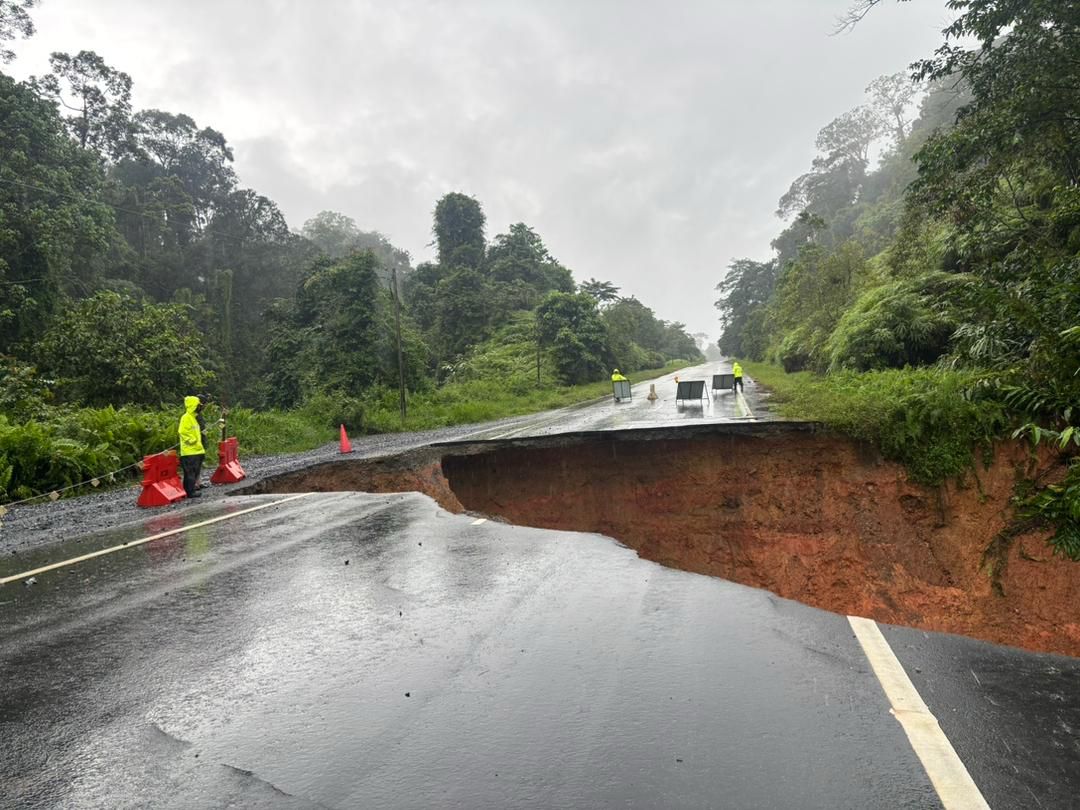 “Laluan itu kini tidak selamat untuk semua kenderaan. Pengguna jalan raya dinasihatkan menggunakan laluan alternatif iaitu Jalan Sungai Tong–Jerteh–Kuala Krai–Aring 8.