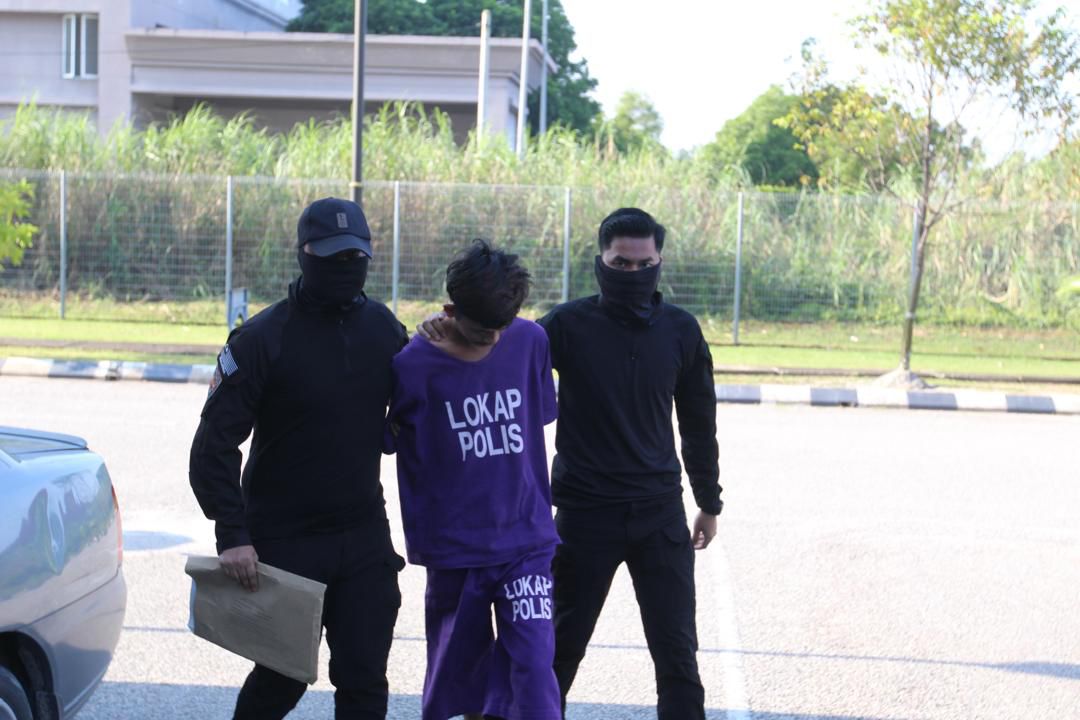 Anggota polis membawa Muhammad Hakim untuk didakwa atas pertuduhan merogol seorang remaja di Mahkamah Sesyen Kota Bharu hari ini.