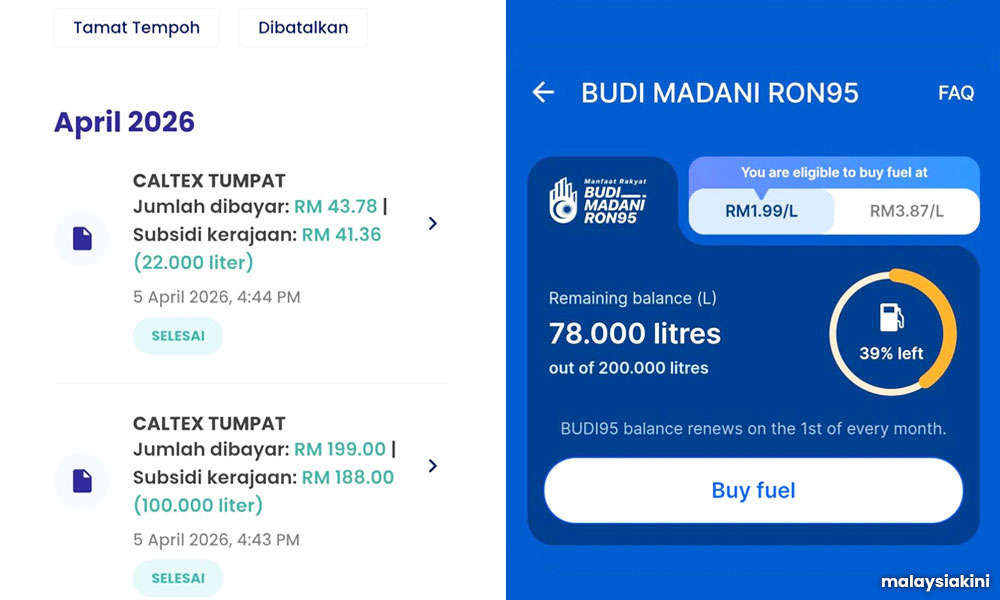 Mohd Fahdli Noor, 39, berkata dia terdetik untuk membuat semakan rekod transaksi di laman web Budi Madani dan mendapati kuota Budi95 miliknya hanya berbaki 78 liter untuk bulan ini (April).