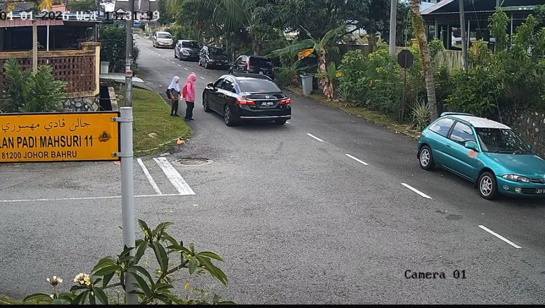 TANGKAP layar video yang tular memaparkan dua budak perempuan lari selepas seorang lelaki dalam kereta menunjukkan kemaluannya dalam kejadian di Bandar Baru Uda, Johor Bahru, semalam.