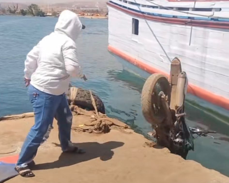 Rakaman video dimuat naik di platform TikTok oleh akaun @aujiaulia menunjukkan wanita itu menolak motosikal tersebut ke sebuah dermaga sebelum ditolak ke dalam laut.